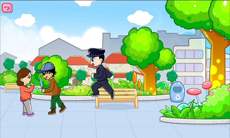 里面包含了一些最基本的常识,有各种急救电话号码,还有各种小知识可以让小孩在玩耍的过程中记住家长的电话号码,走到哪里都不会怕。里面还有炫酷的画面,鲜明的动画,还有各种小动物的动感音乐,让小孩爱不释手。