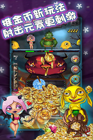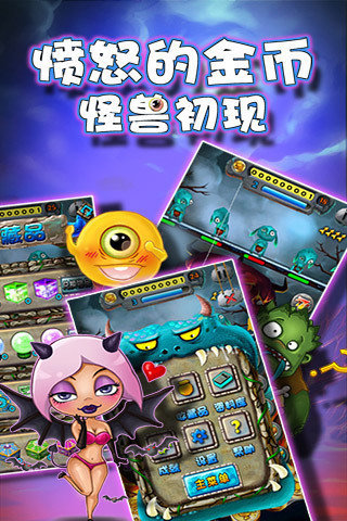 《愤怒的金币》是新潮的推金币游戏,惊艳的3D画质,操纵简单,玩法易懂,愤怒的金币怪兽初现安卓版游戏中射击小怪兽,并把得到金币推下金币机,赢得有趣的道具,换取超值奖励。