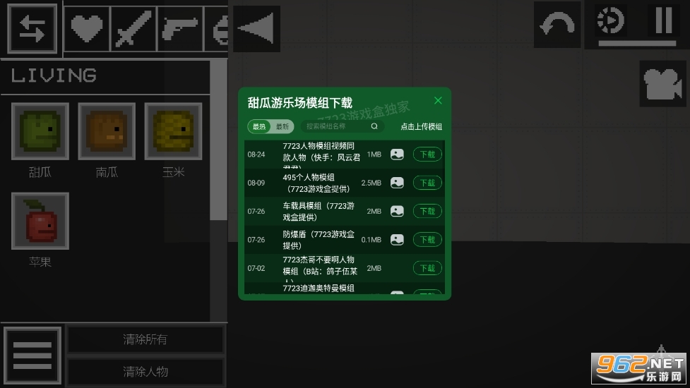 《甜瓜游乐场》是一款热门的像素风沙盒模拟游戏,凭借高度自由的玩法模式和内容,让玩家在游戏里面自由发挥想象,使用丰富的物品和道具,展现你的脑洞,模拟各种场景来解压,想干嘛就干嘛,玩法简单自由,快来下载吧!