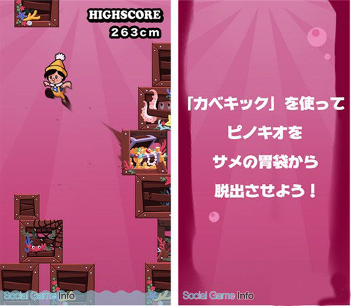 《匹诺曹的逃生》是Poppin Games的动作类逃生游戏,游戏的玩法类似《涂鸦跳跃》。在游戏中我们将扮演被鲸鱼吃进肚子里的小匹诺曹,把各种箱子,木桶等杂物当媒介,一点点跳出鲸鱼的肚子。在跳跃过程中,玩家还需要留意上方掉下来的木箱,以及下方不断逼近的海水。路程总共有10000cm,跳的越高游戏难度也越大,匹诺曹能否脱逃成功就要看玩家的本事了。