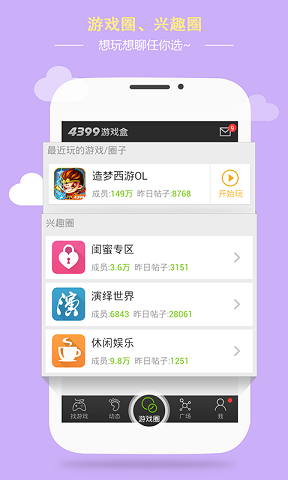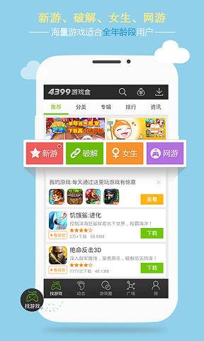 《4399游戏盒》是一个以PC小游戏与手机游戏为主的资讯,下载网站,网站提供了大量各种有趣的小游戏给玩家,这次发行的4399游戏盒是专为手机用户制作,方便用户查找,下载手机游戏,查看最新游戏咨询等。同时还提供玩家交流社区服务,让相同爱好的玩家更容易找到小伙伴一起游戏!