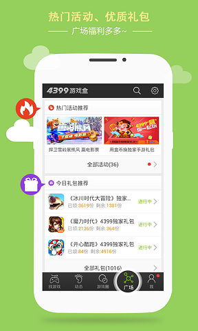 4399游戏盒是4399官方权威打造的一款精品手机游戏平台,集游戏推荐、攻略、礼包、论坛、社交于一体。具有用户免费体验、好友互动交流、游戏圈讨论求助、展示个人风采等诸多特点,您可随时随地一键安装,十万海量游戏经由资深玩家强力推荐、精彩游戏视频解说、最全游戏攻略评测,最火游戏社区,让玩家畅游其中,百玩不厌!