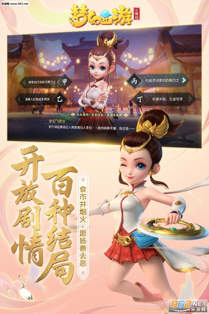 《梦幻西游三维版》是一款非常好玩的梦幻西游题材手游,游戏采用全新的3D画面制作,玩法不变的基础上增加了游戏的玩法,创建经典的角色和职业进行回合制战斗体验,对这款游戏感兴趣的欢迎来962下载体验吧!