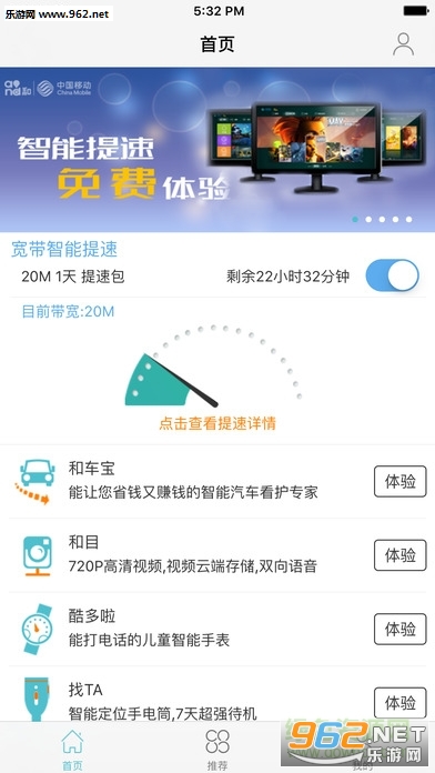 嫌家里的网速不够快,可以使用和家庭购买超值提速包,让家里的网络迅速变快,并且还能够在线办理相关的家庭宽带业务,不用去营业厅排队,非常的实用。