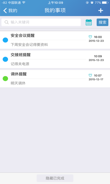 1、备份恢复支持“我的事项”和“我的倒班”;