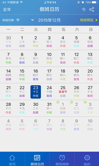 哪天上什么班,特定班次下特定条件的闹钟是几乎所有倒班人群的刚需,也是倒班助手APP软件的核心功能。