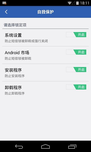 本软件基于Android底层系统设计,对于Android原生的短信功能,进行全面的保护。在启用短信锁保护以后,别人查看短信时,将会有图形锁保护。