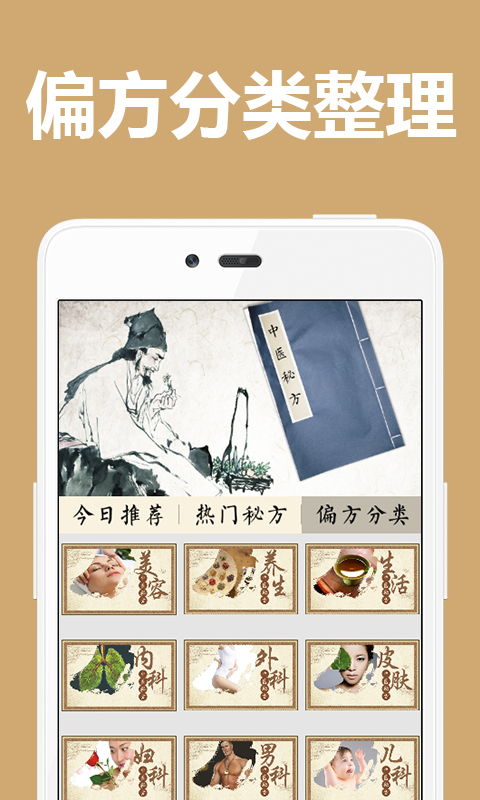 偏方分类:快速根据要查找的秘方偏方类型找到需要的。