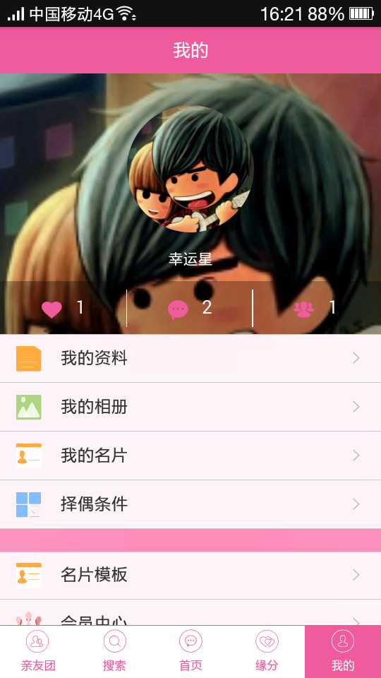 【相亲名片】完成个人资料填写,即可自动生成个性化的相亲名片。