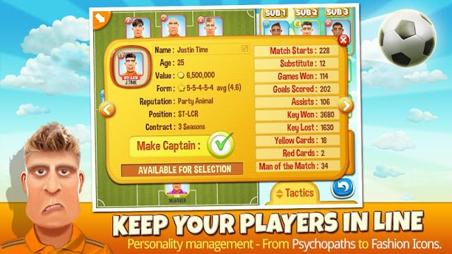 本作的玩法与传统足球经理类游戏比较相似,依旧以经营球队和交易球员为主,但在比赛是,球员们发挥也是非常中重要的!特别是绘画风格的夸张球员头像,让枯燥的足球模拟游戏,也变得非常有趣!