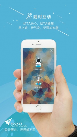 叫人起床是闹钟的基本功能,温度天气一体化、好玩的交互是锦上添花,而火箭闹钟用心的细节、美妙的视觉算得上是一种让人过目不忘的神奇体验。有趣的互动、细腻的声音无法用图片表达,用一下自行体会啦。小美每天早上都要被坚持的小火箭叫醒,晃晃晃手机到火箭升空、头脑清醒,然后——再不起床就要迟到啦!
