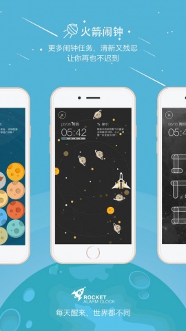 《火箭闹钟》是一款颇具个性化的实用工具,有别于你手机自带的功能闹钟,一个闹钟让你穿越几个世纪,二次元,外太空,坐着火箭让你从梦中醒来,自定义你的独特闹铃,颇具动感的解锁工具,一定让你眼前一亮。