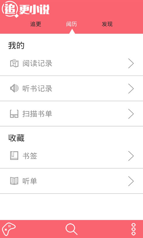 阅历:分为我的阅读记录、我的听书记录和我的扫描书单,以及总书签收藏和有声听单收藏。