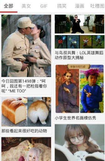 2.新闻糗事、美女图片、搞笑gif、漫画吐槽;