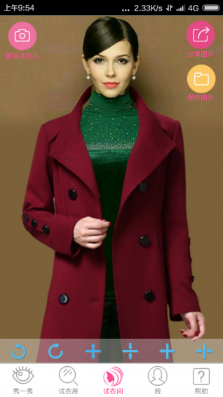 《时尚试衣间app》是一款为广大朋友打造的试衣软件,让你轻松买到适合自己的衣服。软件中可以上传自己的照片,然后把衣服试穿到自己的照片上,让你不到现场也能买到放心满意的衣服,非常实用。