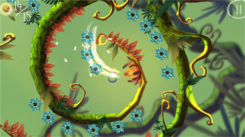 《Baum》的玩法比较简单,玩家在屏幕上划动手指,在游戏里制造一阵风,在风的吹拂下小水滴随之移动;移动时要注意避开一些障碍物,小水滴经过花朵时会让这些蜷缩的花儿盛开,绽放花儿应有的光彩,所以玩家在游戏时也要注意收集这样的成就。最终这个从花儿中诞生的小水滴经过重重冒险,回归另一朵花儿之中。