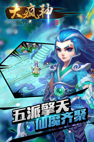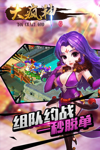 大疯神是由‘问道’制作团队最新打造的国产神话题材回合制MMORPG手游,绚丽的各种技能,由专业U3D引擎打造的人物地图界面,一定能够征服广大玩家挑剔的眼球。此外,个性鲜明、色彩亮丽的角色、妖孽造型,绝对让您眼前一亮、欲罢不能!