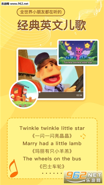 2、100%原版英文儿歌视频,优质动画,纯正发音,调动视觉听觉双重感官。