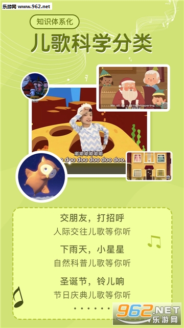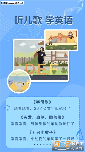 非常不错的儿童英语启蒙软件,以儿歌视频为主要形式,生动的画面,优美的旋律,让小朋友们可以在欢快的儿歌中,学习到丰富的英语词汇!