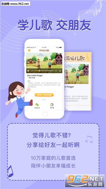 大耳狐儿歌,扇贝旗下儿童英语启蒙产品。精选优质英文儿歌视频,旋律动听,画面精致,为孩子打造舒适的英语语言环境。