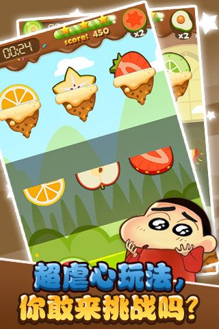 游戏画面采取清新的水果,蜡笔小新的主题。以闯关冒险无尽模式等多种玩法为大家带来寻找挑战!