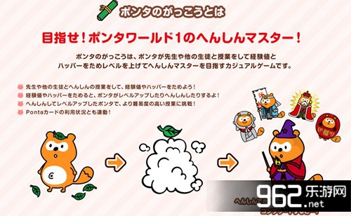 《Ponta的学校》是由Loyalty Marketing和Showcase Gig共同制作的一款以宠物乐园为背景的益智类三消手游,本作中玩家将以变身名人为目标,和狸猫“Ponta”一起上变身课(消除游戏)。