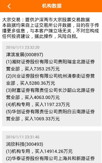 3、每日最及时的机构数据以及大宗交易数据,全免费,随便看;