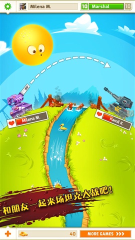 坦克战役是一款非常有趣的卡通画风坦克对战手游,游戏采用2D的平面设计,玩家将操控自己的坦克对地方进行抛物线的炮击,简单却十分有趣的玩法让你和小伙伴愉快的度过休闲时光。