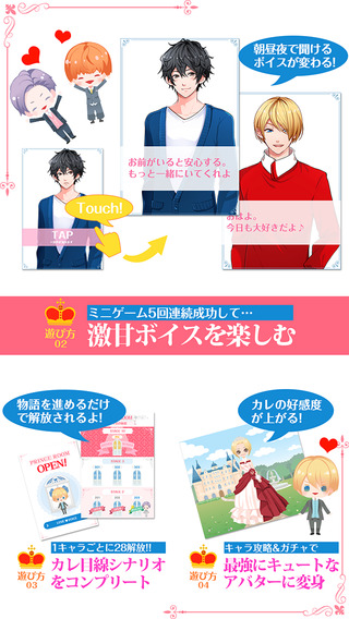 《恋爱吧王子大人》是一款由日本开发商Pakureserve推出的最新乙女类恋爱养成游戏。游戏除了精美的游戏画面和丰富的游戏恋爱剧情之外,还主打了“甜美的游戏声音”。