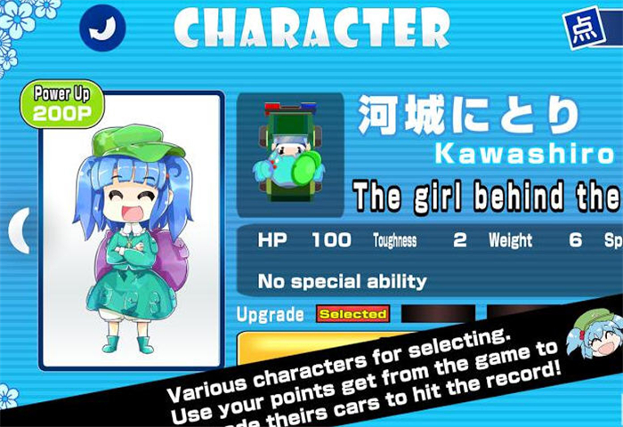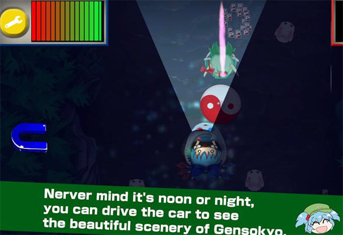 本游戏为东方Project的二次创作游戏。操作超电磁车与幻想乡少女们一同兜风吧~游戏目标通过所有关卡,挑战更高记录!