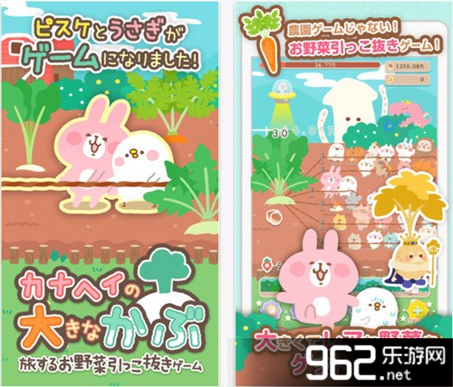 《加奈贺的大萝卜》是一款非常酷炫的休闲游戏。这款游戏拥有着超清的画面设计哦,日系风格的可爱画面,还有很多有趣的道具可以选择哦,超有趣的关卡设计!本作的主人公是カナヘイ老师笔下的人气角色:ピスケ和うさぎ,玩家将通过连续点击屏幕和他们一起拔萝卜,可以召唤各种小动物来帮忙,也可以给小动物们提升等级。难度会随着关卡加强,可爱的小动物也会越来越多。同时,如果玩家能够坚持玩本游戏的话,每天都能得到カナヘイ老师绘制的手机壁纸作为奖励。
