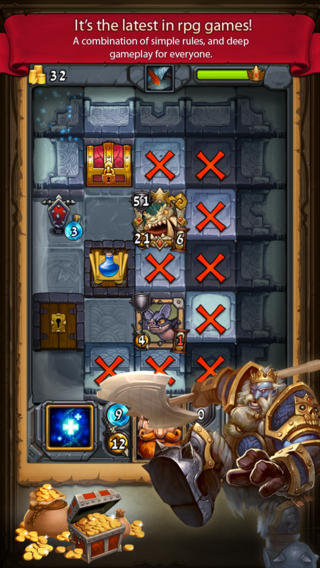 《地牢爬行2(Dungelot 2)》是由Red Winter Software开发的《地牢爬行》系列冒险游戏的全新续作,再次踏上神秘的地牢冒险之旅。游戏的操作方式非常简单,你只需率领英雄们在地牢里不断的翻格子,并消灭翻出来的怪物们,拾取格子里的宝藏、药水,以及通往下一关的钥匙。虽然这款游戏的画面非常普通,但是独特的扫雷式地牢冒险玩法还是非常不错的哦!