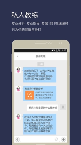 “咨询教练”功能全程为您解答健身难题。