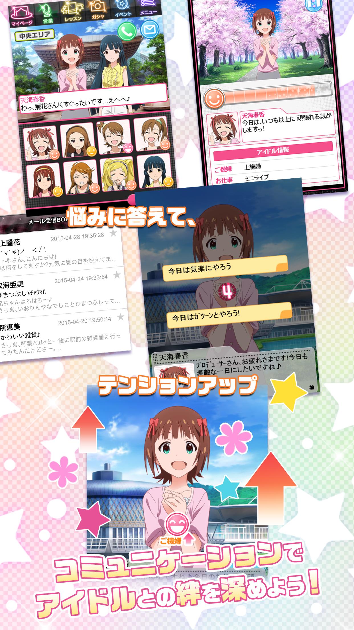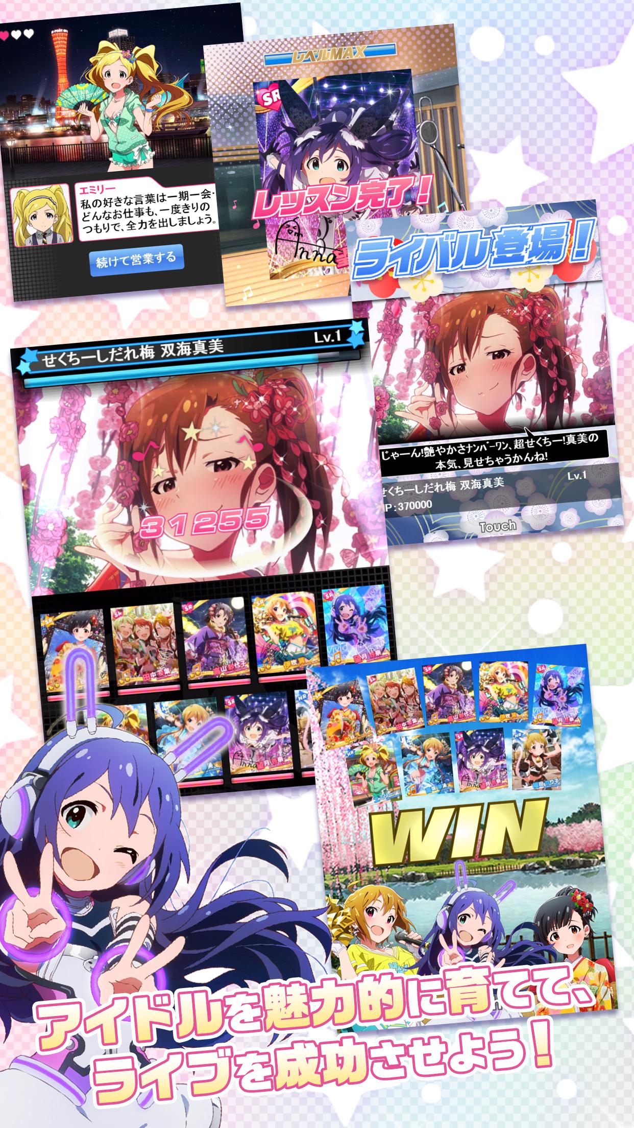 游戏内含1000张以上的卡牌全由《偶像大师》动画版的A-1 Pictures公司所描绘,全员50位偶像都配有语音和独唱音乐!另外,在活动期间内,官方还会每周更新被选拔出的两组「5人团体」的全语音故事。