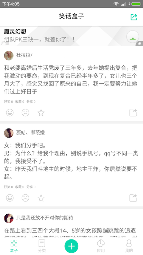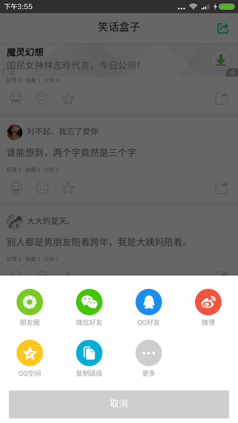 笑话盒子app是一个有内涵的笑话段子的集合平台,提供各类新鲜热门、各种口味的笑话段子,无论你是哪种类型爱好者在笑话盒子app里都能找到适合你的话题,为你的生活增添无限的乐趣。我们可是很认真地在搞笑哦!