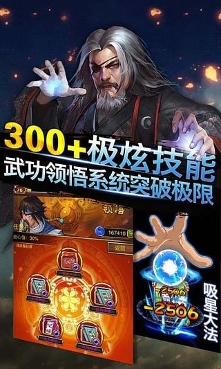 所有技能秘籍与武侠卡缘分密切,无须花费时间去找,直接可由武侠卡领悟得到,是国内首款由卡牌直接生成卡牌的策略游戏。