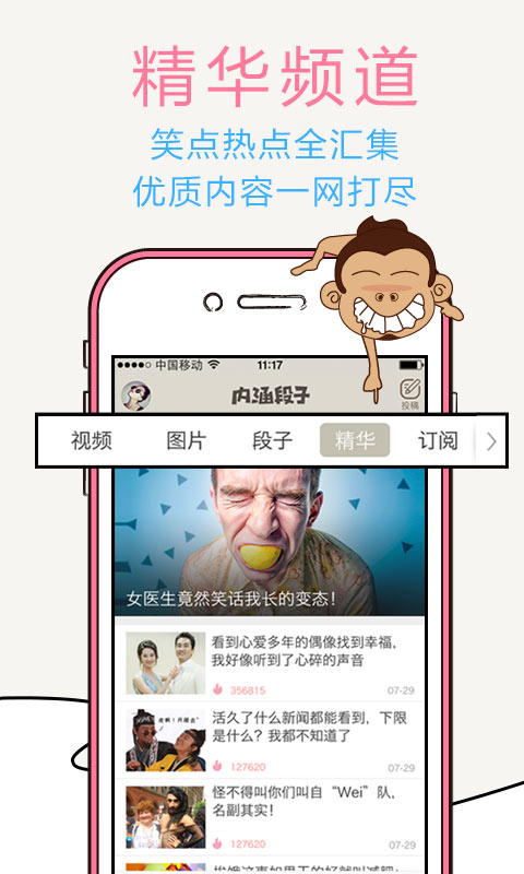 最火爆的娱乐社区,内涵的不只是段子。最热辣段子,最爆笑的图片,最有趣的短视频,承包所有你无聊的时间。更有段友暴强“神评论”,花式吐槽,脑洞大开,麻麻问我为什么跪着玩儿手机……