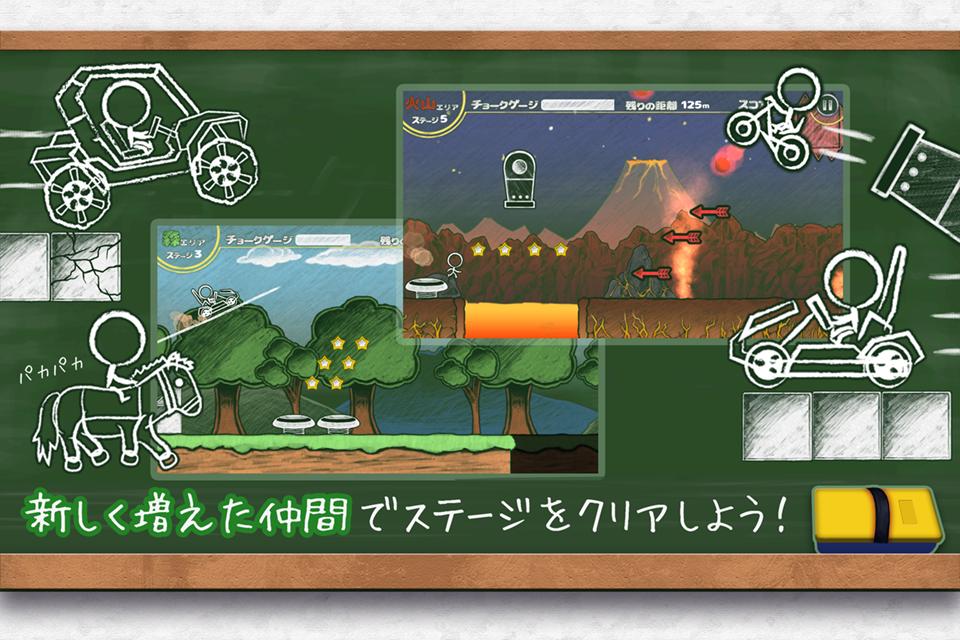 《扼流破折号》是一款玩法非常有趣的粉笔画手绘画风的冒险闯关手游,彩绘画面充满童趣,主人公就是用白色 粉笔画出的火柴人,还可以为他装备上各种交通工具,当然最终要的玩法就是为火柴人画出道路,让它越过障碍,一路前行!