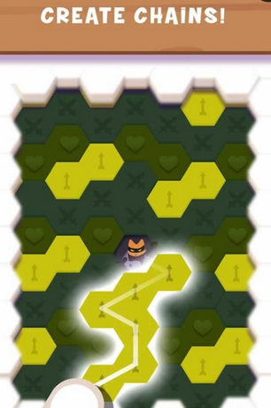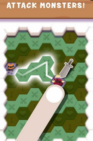 《英雄的旅程》是一款小清新简洁画风的休闲益智手游,画面是一个蜂巢样式的棋盘,布满了各种不同颜色的图标,有有利的爱心和攻击的剑与剑,还有等待的怪物,玩家要走出一条充满爱心的道路,避免受伤,前进冒险。