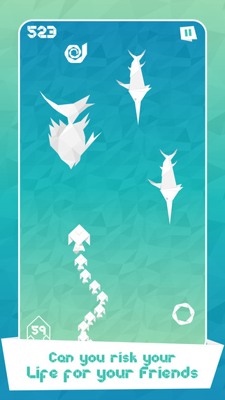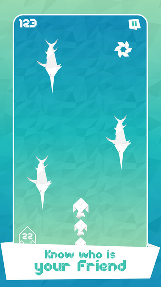 《鱼长跑》的玩法非常简单,玩家将扮演一条纸折的鱼,在海洋里不断游动,像《海底总动员》的玛林一样寻找走失的伙伴们。在寻找小鱼们的过程中需要躲避大鱼的攻击,还要保护已经寻找到的小鱼免受大鱼的吞食。当你找到很多小伙伴之后,要注意将他们收藏起来,只要点击左下角的小鱼图标就可以了。如果你不小心碰到了迎面游来的大鱼的话,贴在鱼背上一起前进的小伙伴们会被吓得四散游走。值得注意的是,当你身后没有小鱼的状态下触碰到大鱼,游戏就会结束。因此,什么时候将小鱼们收藏起来是游戏的关键。