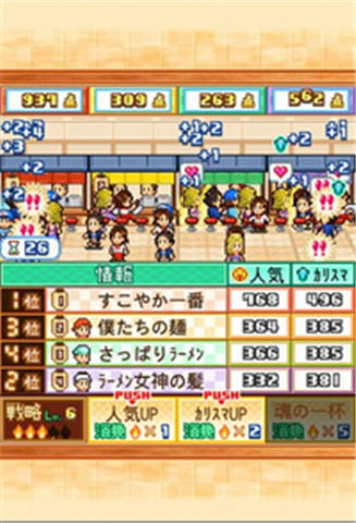 一贯的老样子,成为最强就是我们的目标。在游戏中玩家要经营店铺,开发菜单,赢取各地的比赛,在规定的年限内成为国内顶尖的拉面王!游戏玩法是不是似曾相识?基本上开罗推出的每一个作品,叮叮都有玩过,而它们的戏玩法大致上可以分为 5 种。