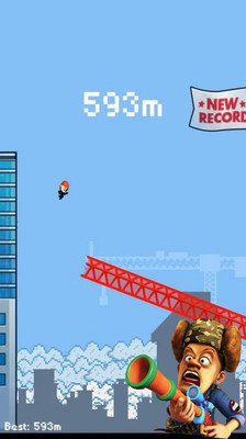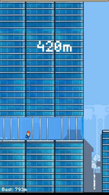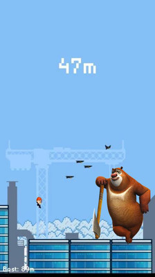 光头强跑酷游戏中,玩家需要控制光头强在城市的高楼大厦间穿行,跳过楼与楼的间隙,躲过陷阱障碍,到达更远的距离解锁新成就。游戏的操作非常简单,点击屏幕让光头强跳跃在建筑物之间,长按屏幕让光头强滑行,从而躲避悬吊着的障碍物。