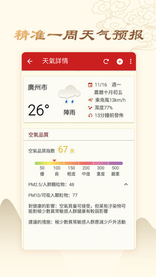 本软件可不是仅仅的查询万年历那么简单,本软件是多种工具的集合,游戏天气,中医养生,备忘录,财神罗盘等等你需要的东西,炎黄子孙的必备查询软件!