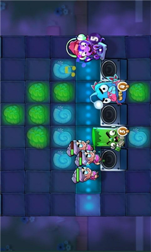 本作在玩法上融合了塔防与三消,整体思路是在固定的怪物前进线路上布置不同类型的怪兽,并且通过消除相同颜色的元素来让怪物升级,在怪兽达到终点之前将之全部消灭。看似简单,但规则上《怪兽派对 Party Monsters》又与传统的塔防、三消玩法有一定差异。