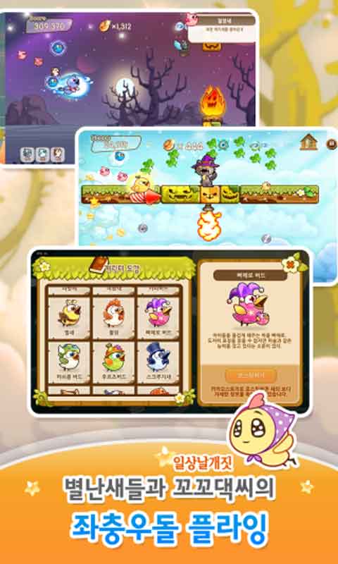 韩国出品的横版跑酷冒险手游,采用Q萌动漫画风,圆滚滚的小鸟形象是游戏主角,当然不仅仅这一种卡通形象,还有小猫小狗小鸭子等萌系角色,等待玩家你的解锁哦!