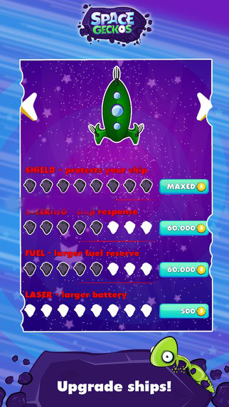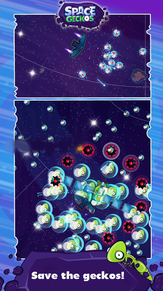 《太空蜥蜴》(Space Geckos)是一款以太空为背景以蜥蜴为题材的射击类手机游戏,游戏的画面清新简洁,玩家将控制小蜥蜴在太空中射击敌人,进行冒险。游戏中还有可以使用金币强化自己和飞船的属性,让自己更容易的闯关。
