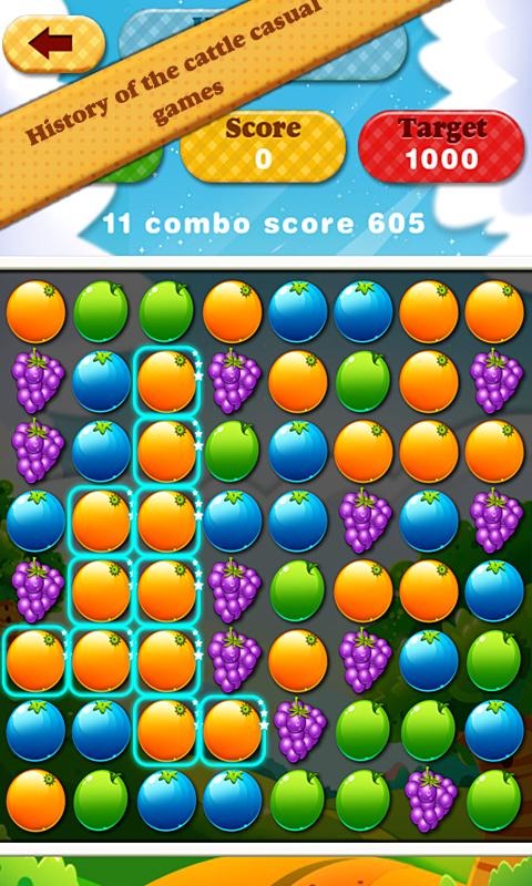 1.只需点击两个或两个以上颜色相同的水果即可消除;