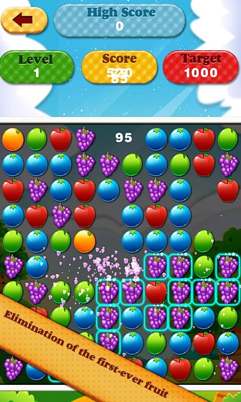 《天天水果消除》是一款画面清新自然的消除类趣味休闲手游,游戏画面精致,有着各种新鲜亮丽的水果。游戏玩法简单,类似消灭星星,点击至少两个相同的水果即可消除,达到关卡通过分数即可进入下一关,适合休闲时玩,打发时间。