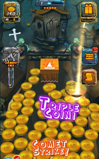 《僵尸派对:金币狂热破解版》是一款街机风格的僵尸推金币游戏,游戏中你将以最快的速度点击屏幕,金币推到的越多分值就会越高,赶紧来加入挑战吧!