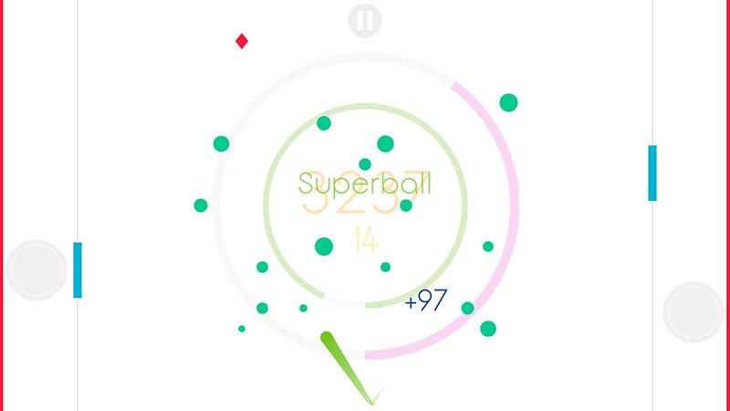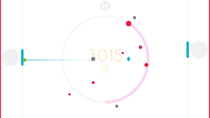 游戏是利用物体碰撞反弹进行玩耍,在激烈撞击中找到乐趣。左右两块蓝色挡板放置绿色小球,轻触屏幕弹射出去,中间有大小不一的红色、灰色圆点,还有一个蓝色菱形小块,当小球撞击到它将获得大量积分,然后进入下一关。两块蓝色挡板可以随时移动,帮你接住小绿球。